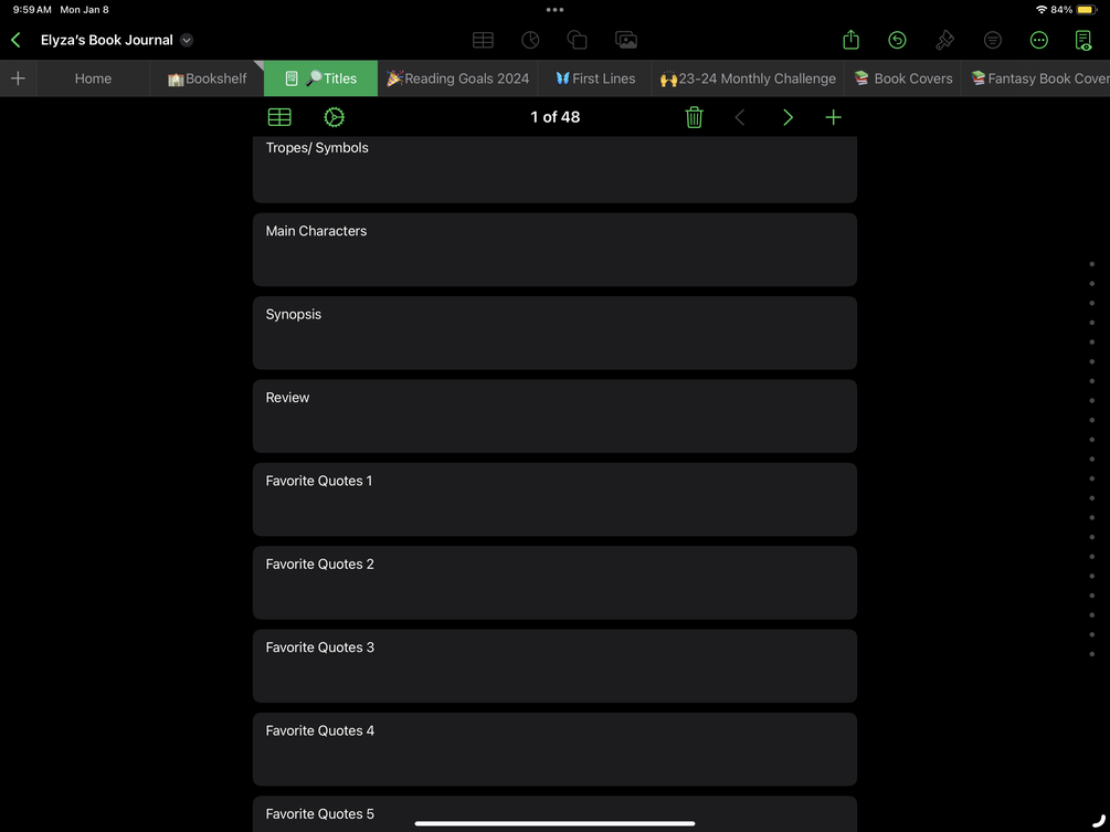 This reading journal grows with you over the years. It’s easily adaptable and customizable. If you like to track all the things about your books, including author and character fan pages, and you hate running out of space, you’ll love this journal. Need to remember who you borrowed a book from or where you lent it, we’ve got you too!