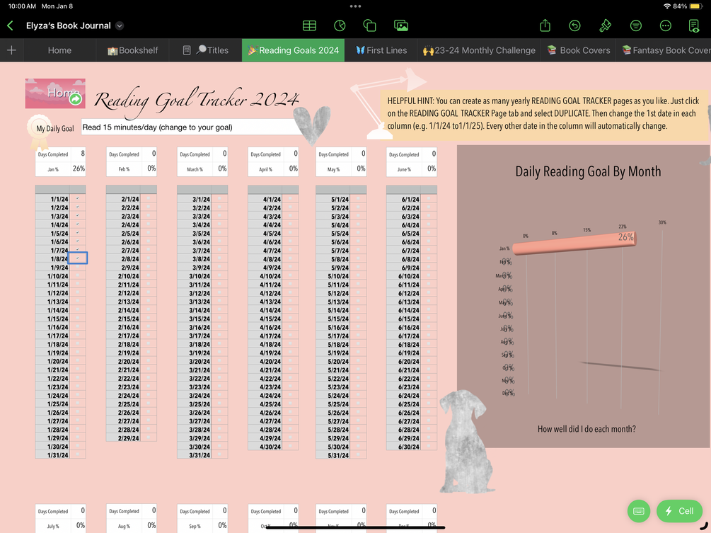 You’ll get a pink themed book tracker for Apple Numbers. Tip: Read your Kindle and have this side by side to take notes as you go!